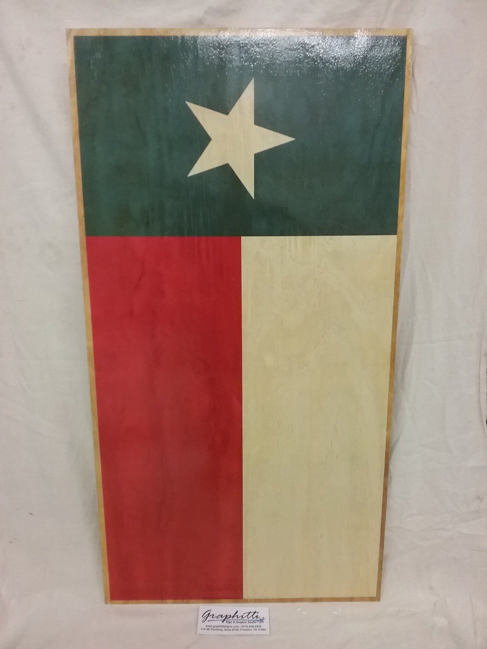 Graphitti Sign & Graphic Studio produces wood flags and cut outs! Great for business or residences. Wood flags are beautiful decorative conversation pieces and can show your patriotism, statetriotism or other ism’s as well. Wood is great for nostalgic graphics and images. too.