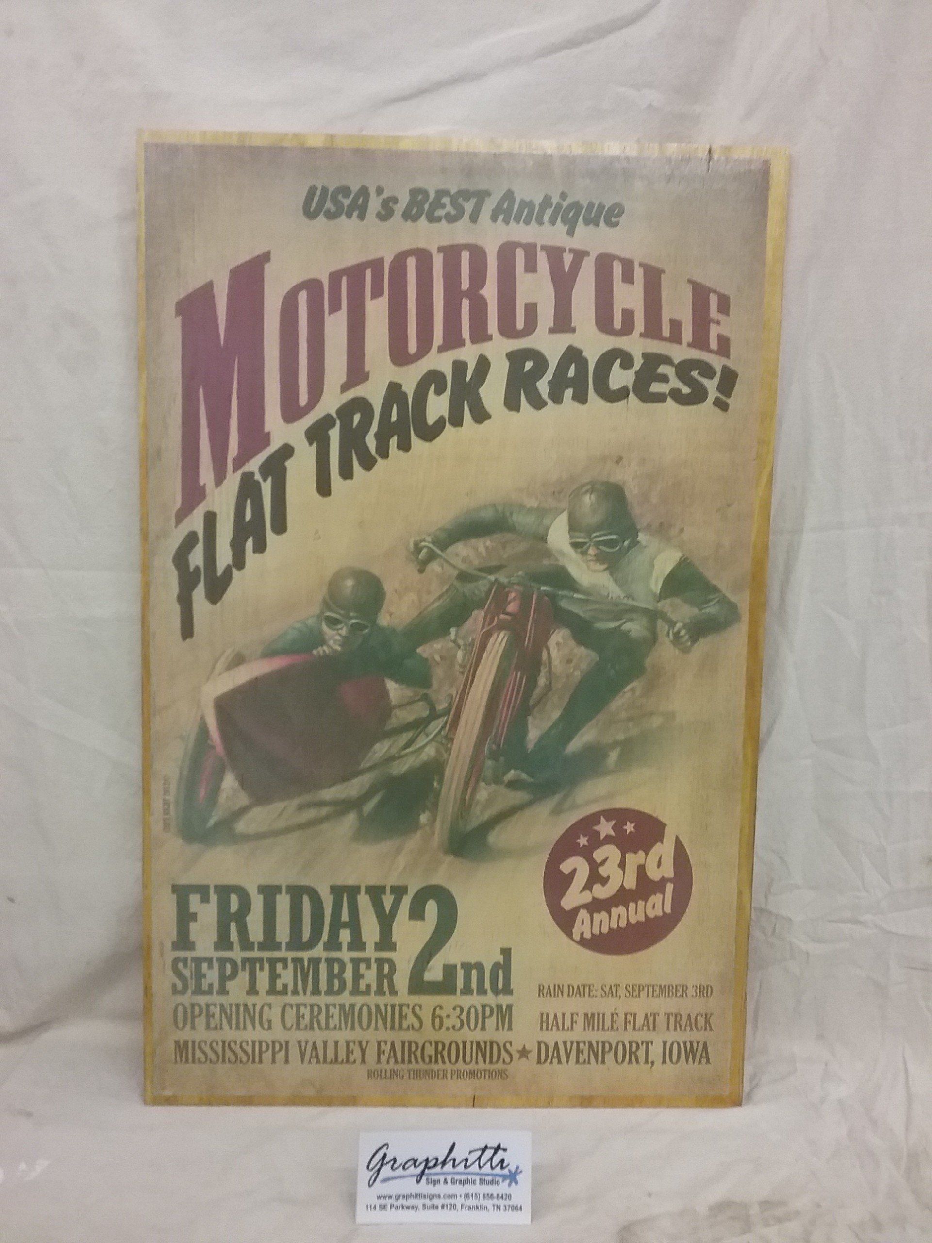 At Graphitti Sign & Graphic Studio, we have multiple approaches for applying graphic images on wood and produce flags and wood graphics with different looks and properties. You really need to check em out.